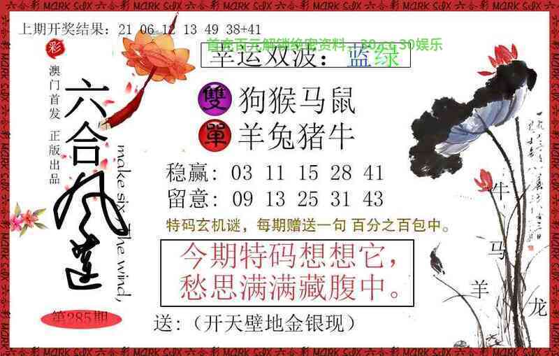 286期:【菜肉草肖】开:兔03准 (草→马羊)(菜→猴鼠) |